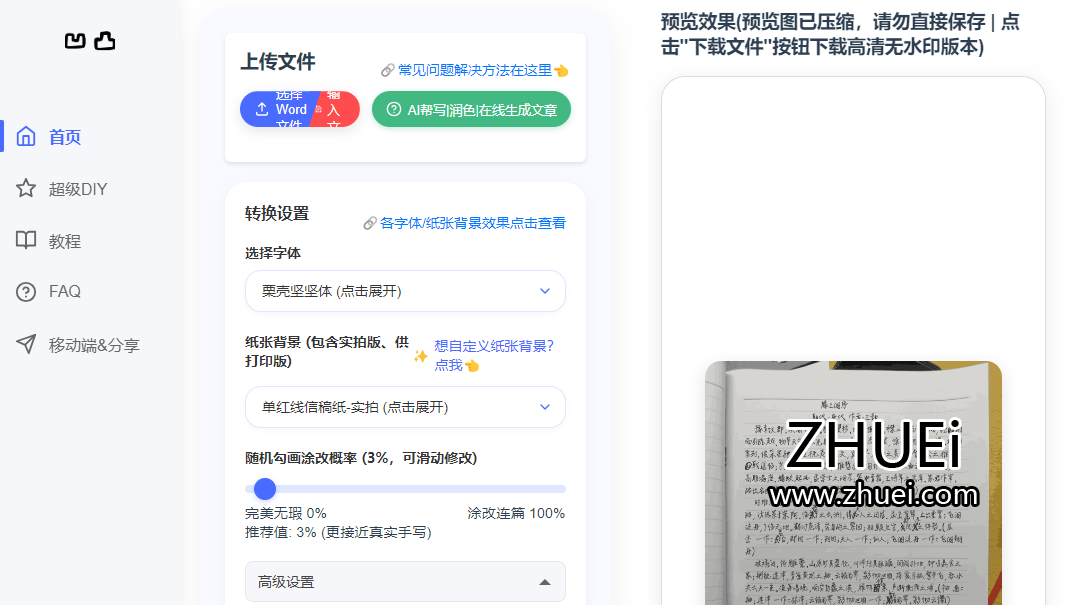 凹凸工坊是一款专业的在线生成模拟手写稿件工具,可以一键将您的文档转换为真实的手写稿图片。支持多种字体风格和纸张背景,让您的文档展现出真实手写的效果。